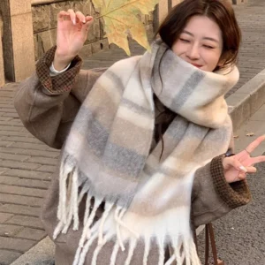 Winter Scarf for Women Cashmere Warm Plaid Pashmina Scarves Blanket Wraps Female Thick Soft Bufanda Tassel Shawl Long Poncho