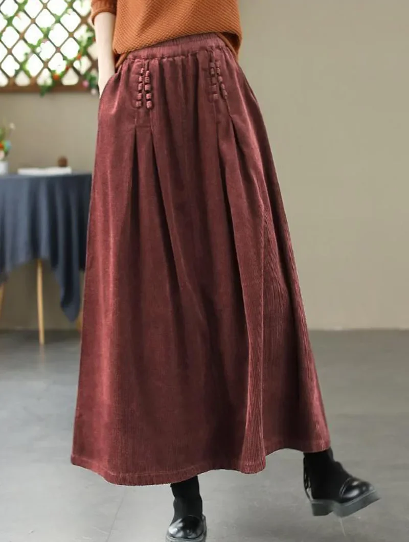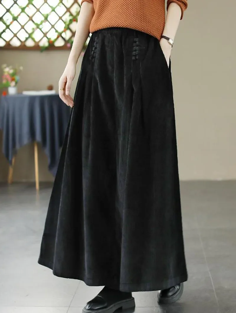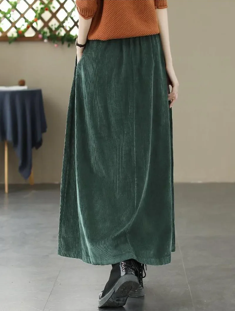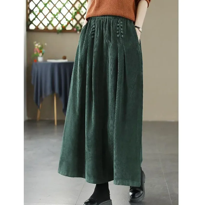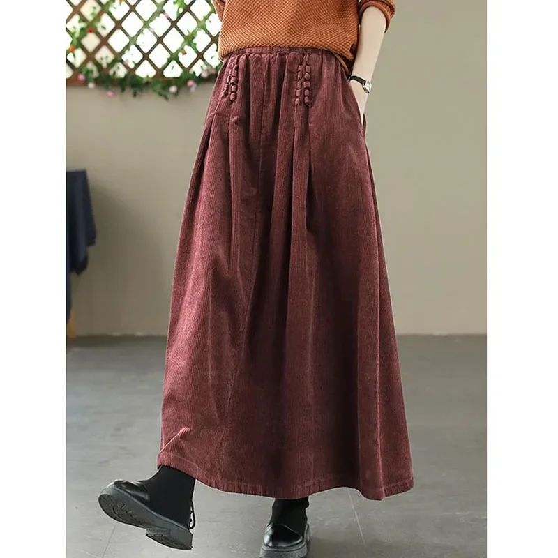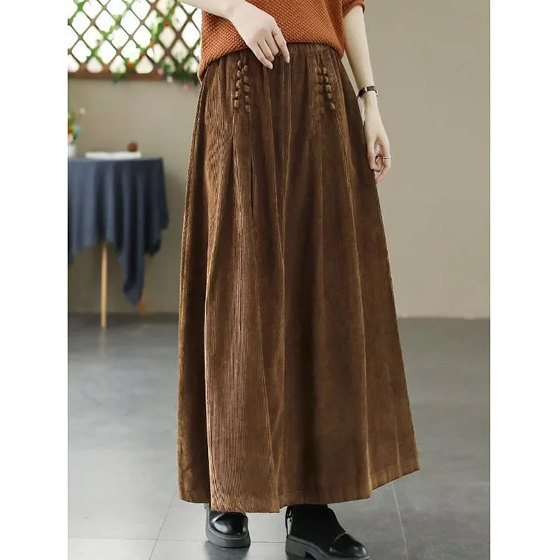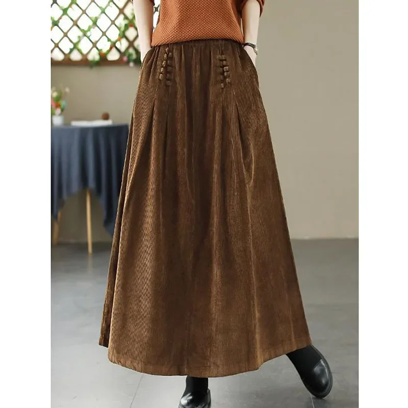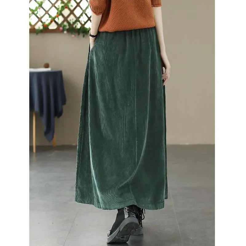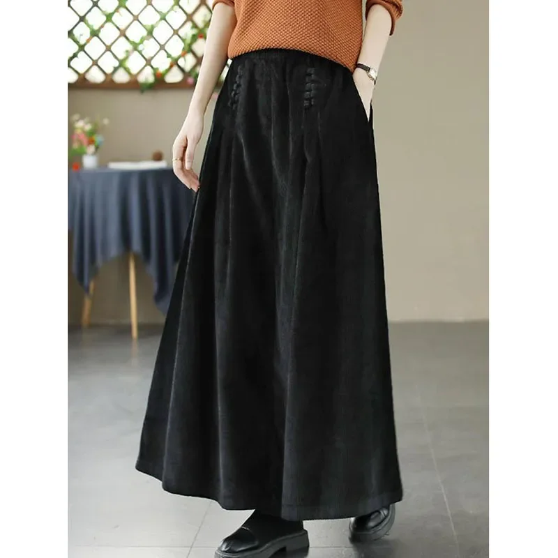 High Waist Long Skirt Women Elegant Streetwear A-line Skirts Lady Fall Winter Loose vintage A-line corduroy skirt