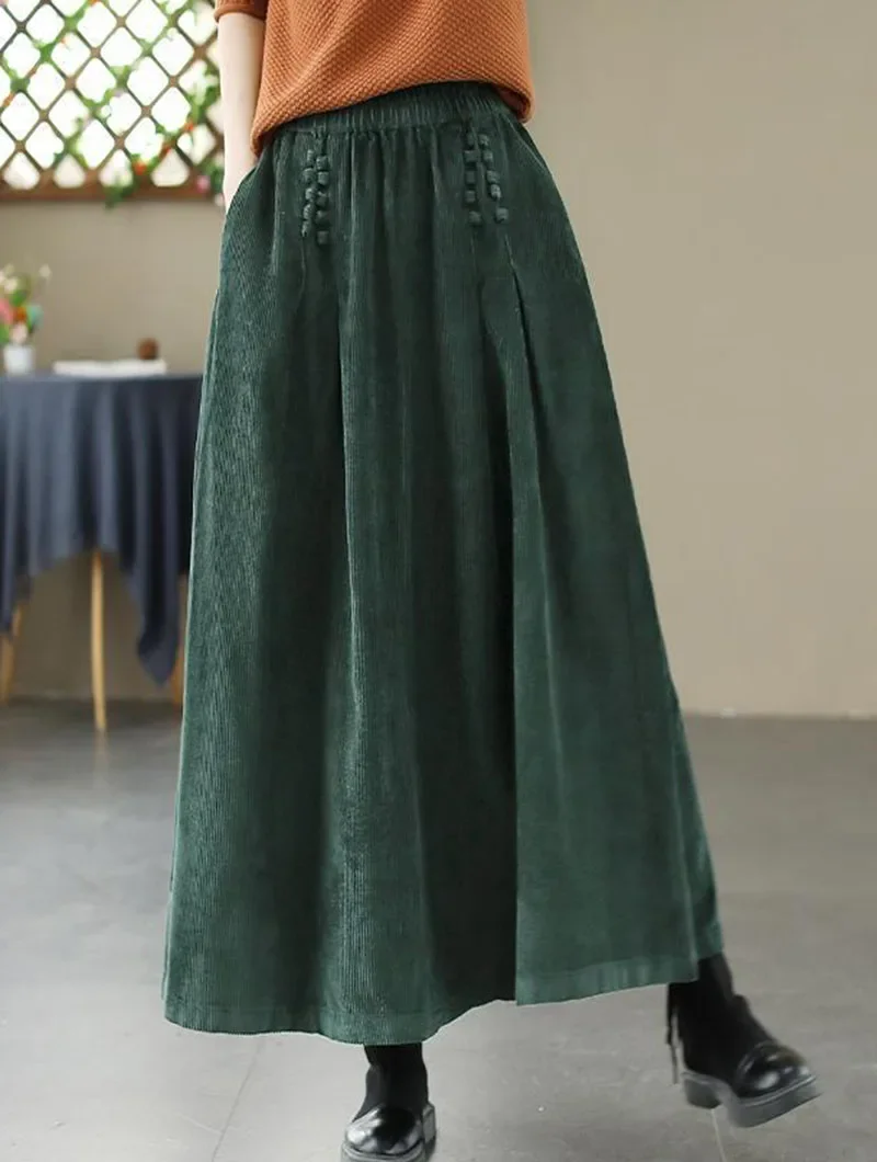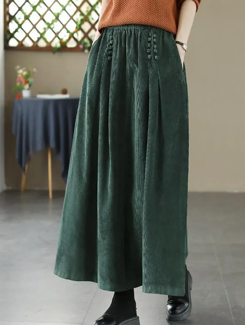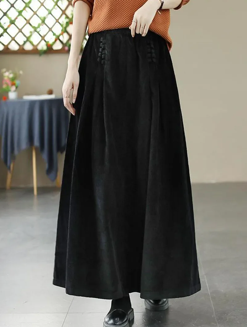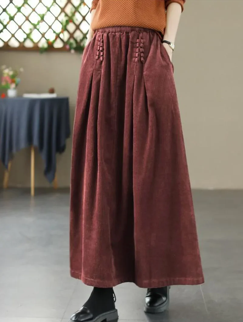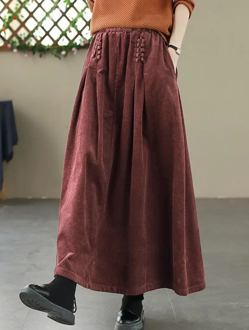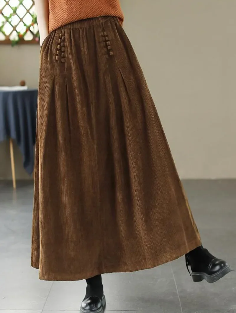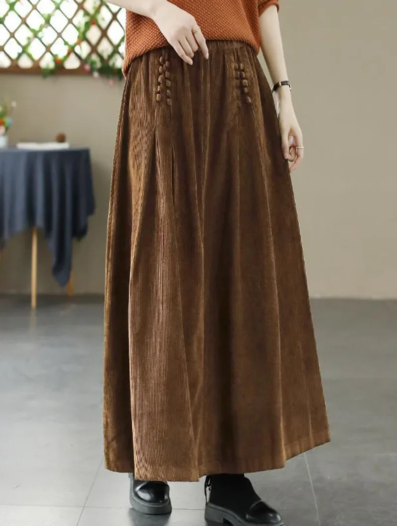 High Waist Long Skirt Women Elegant Streetwear A-line Skirts Lady Fall Winter Loose vintage A-line corduroy skirt